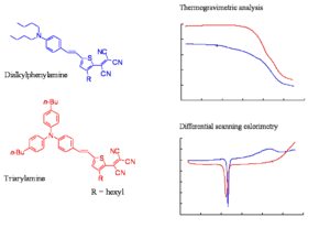 Thermogravimetric analysis shows the decomposition temperature for DPA and triarylamines