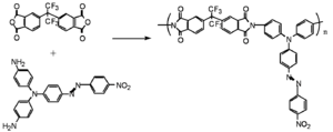 A dye is incorporated into the main polyimide chain