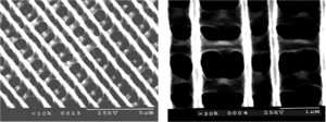 Current lithography techniques are able to make structures at 60 nm. However TPA microfabrication can produce features close to this size and with 3D resolution. In this example, the width of the lines is about 170 nm and they were obtained by two-photon induced polymerization with 730 nm laser light.